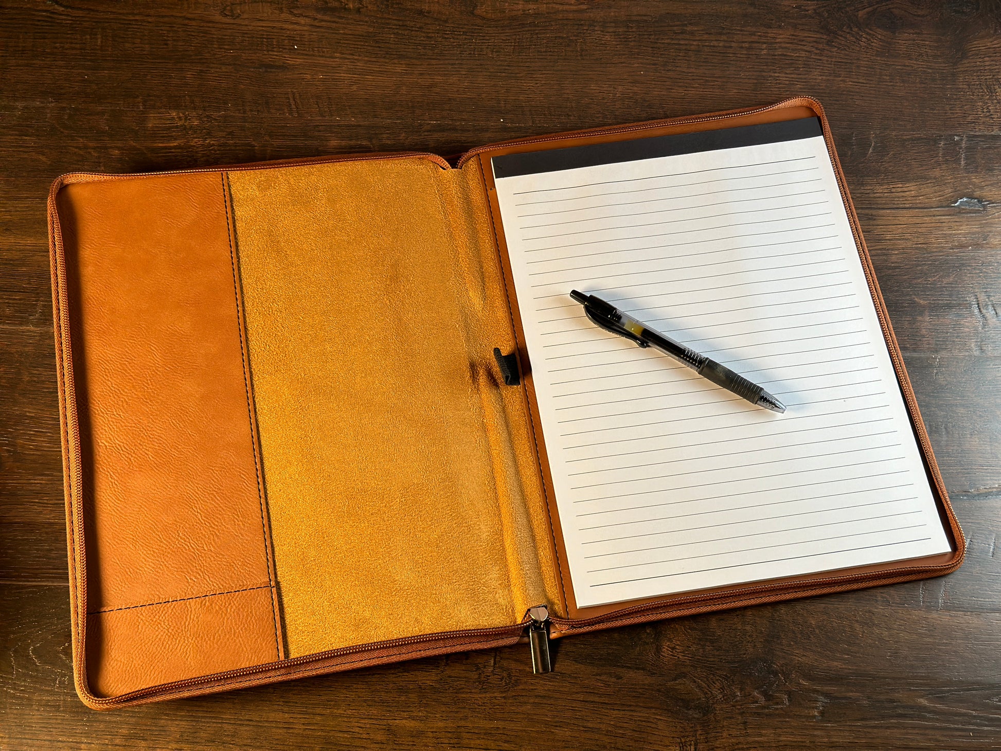 CBTS 9 1/2" x 12" Rawhide with Zipper Leatherette Portfolio with Notepad