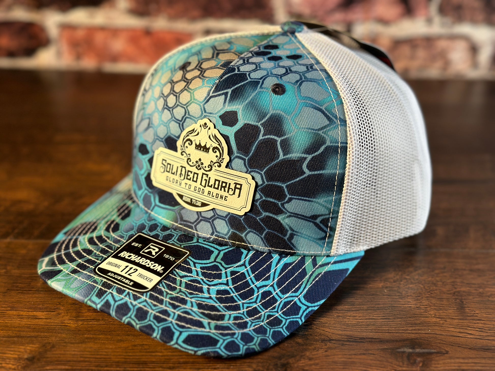 SDG Kryptek Aqua Trucker Hat with White Patch